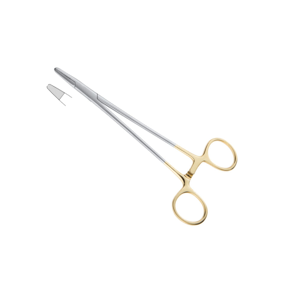 Mayo-Hegar is one of the most commonly used types of needle holders in operating rooms. The serrated jaws and gold-plated ratcheting handles are available in a variety of lengths.